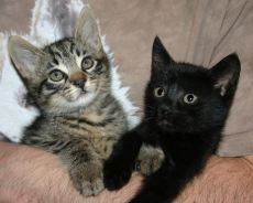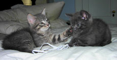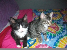 Malibu is the lighter kitten and female; Montauk is the darker kitten and male. These siblings are 8 weeks old. They were rescued from the streets along with their mom (Misty) and have been living in a foster home since they were 3 weeks old. They are sweet, friendly and playful!