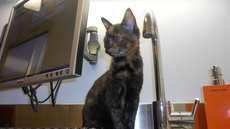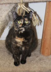 This distinctive tortie/calico with most unusual markings comes with lots of Spanish flair! Madrid is a sweet and friendly 3 year old cat who gets along with other cats and has been exposed to dogs too.