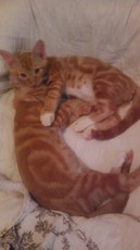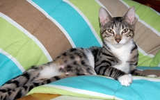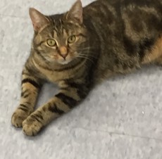 reminds us of a tiger with his big head and lithe body but he's just a pussy cat, very mellow and loving