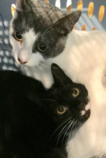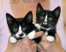 These young, cuddly, black and white tuxedo cats are sweet, friendly, and