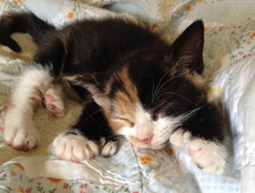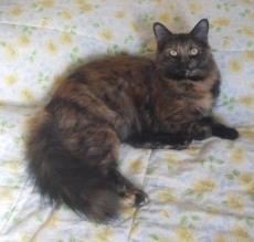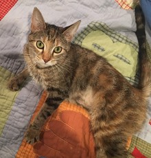 Mama Mia (a/k/a Maya) has been a fabulous mother for her litter, all of whom have been adopted except for sweet little Celeste. Now spayed, Mama Mia's mothering days are behind her and she is ready for a life all her own. A beautiful calico about 1 1/2 years, Mama Mia is settled in a foster home for now where she gets lots of tender loving care.