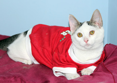 Mr. Moustache is an 8 month old tuxedo cat (black and white with a black "heart-like" spot on his chest) whose owner recently died. Now residing in a temporary foster home, this handsome and super sweet kitty needs at least a long term foster home until a permanent loving home is arranged. Mr. Moustache is vocal, affectionate and playful. He gets along well with other cats and dogs and would make a good family pet, as long as his new owner is loving and patient. He is in excellent health and is soon to be neutered. To learn more about Mr. Moustache and meet him, please contact Fran at f.grasso@att.net.