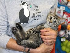 Mr. Kitty is an affectionate and outgoing boy. He'll greet you at the door and be ready for any adventure you have in mind. This 10 month old kitty divides his time between playtime and pampering. He doesn't mind getting a lift in your arms and will reward you with a nose nuzzle and a purr. He has a lot of personality to go around and would do well in any family. He is now a resident of our Kitty Cottage.