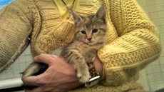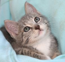 Murray is one adorable 14 week old kitten (born approx. end of March) who simply purrs all the time. When playful Murray is done playing, he will sit in your lap and cuddle. Very sweet and friendly, Murray gets along with the other cats in his foster home, but just adores people! He is the kind of kitten you've always wished for - super affectionate!!