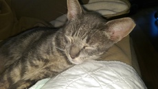Mouse: male, approx 7 -8 yrs old, domestic medium hair. He was adopted after he was found outside as a declawed stray. He is now an indoor cat and very affectionate. He enjoys cuddling up and is a lap cat with a laid back personality. Gets along well with dogs. Please contact Ferrol at 845-518-6155.