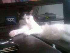 is a real sweet cat. He is about 12-18 mo. old and a lover.