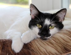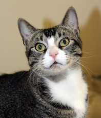 Myles is a beautiful tuxedo, about 6 years old. He is friendly and a bit devilish - can create a commotion and then be a true gentleman. He has been a good friend of Pansy, also featured on this website. Myles is an engaging cat who will intrigue you. He is one kitty you will enjoy meeting.