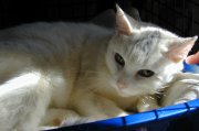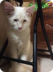 Mori is a handsome white soft furry cat with light brown ears and tip of tail, along with blue eyes. Rescued in Port Chester with the other kittens in his litter (now adopted), he lives with another cat and older dog in his foster home. Mori is a bit shy but warms up to lots of petting and tender loving care. He will make a great addition to a family with older children, or a couple.
