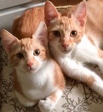 Mac-n-Cheese. You won't be able to resist this dynamic duo. These 5 month old brothers (born end of March) are as sweet as they come. They eat together, play together, sleep together and are basically attached at the hip. They are super friendly and love hugs and kisses from their foster mom. They're happy, easy going and ready for their forever home.