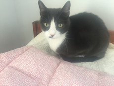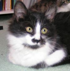 Myles is a 6 year old handsome tuxedo and Pansy is a 3 1/2 year old adorable black/white charmer. Amazingly these two found each other at our Kitty Cottage and came to enjoy each other! But they have very distinctive personalities, have become quite independent of each other now and can be adopted separately. Myles is friendly and a bit devilish. Pansy has a lively impish personality and can be a mischief maker.