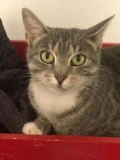 Maddie is a beautiful tabby, about 1-2 years old. She is very sweet and friendly. She has an adorable face that is hard to resist.