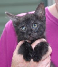 Mystic and her siblings are 7-8 weeks old and just adorable. They are extremely loving and playful too. Mystic is all black except for an adorable little white spot on her on rear leg.