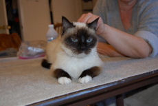 Mugsy is a stunning 1 1/2 year old chocolate tipped Siamese cat. She is currently living in a foster home where she is getting lots of tender loving care and appreciating being in a warm safe home. A little shy at first, but once she gets comfortable Mugsy loves to be petted and will meow and rub up against you as you scratch her back. She loves to look out of the window and her favorite food is Friskies Country Style Dinner.