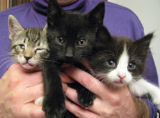Monday, Tuesday and Friday are three super sweet, social, outgoing, adorable kittens (approximately 8 weeks on July 19). They all get along with the foster dog and cat and are litter trained. Please complete our online cat application (found on our Pet Rescue website) to be considered for adoption of these kittens. ts