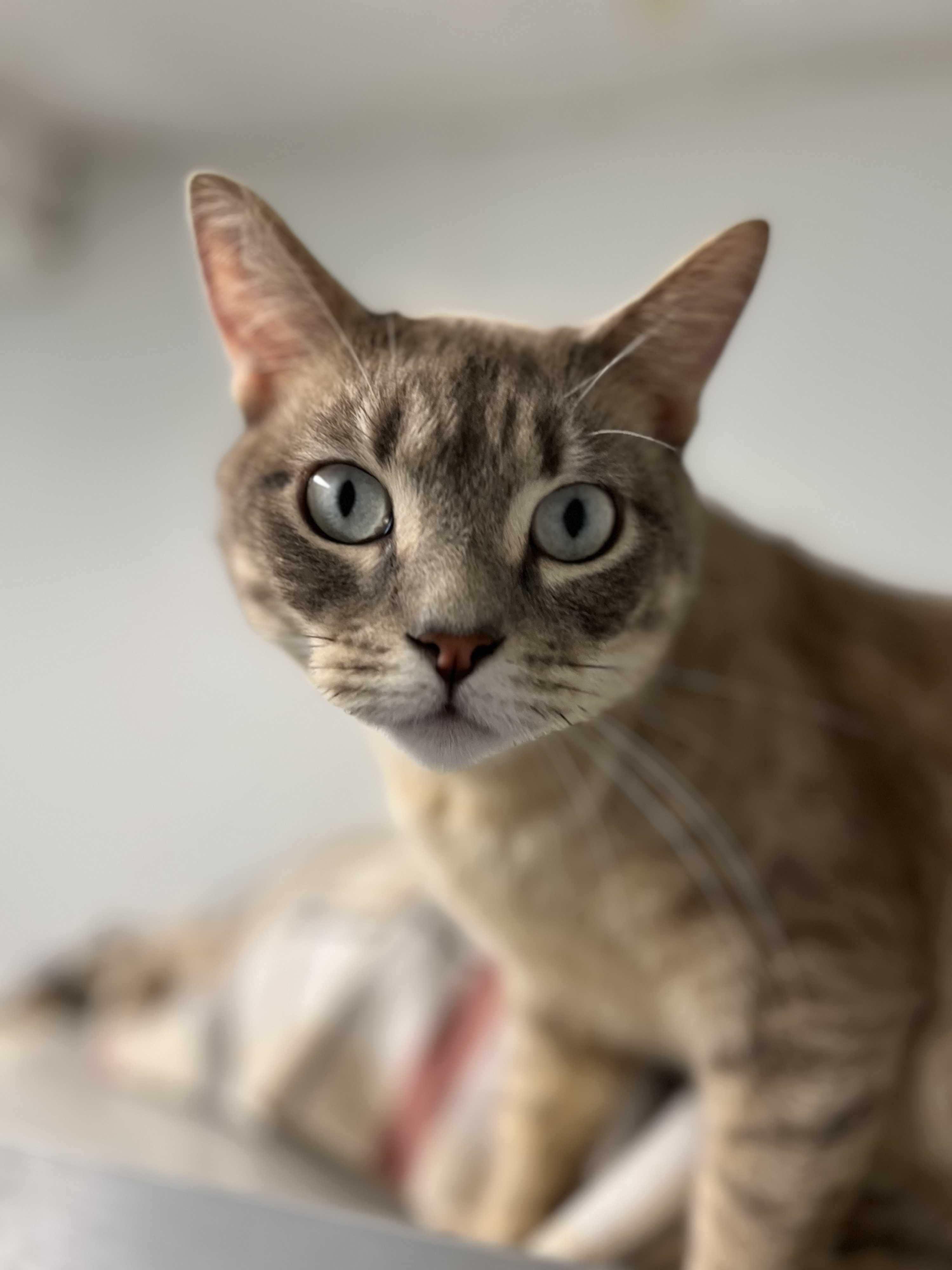Born July 2024 Nico was abandoned in the Bronx. He is a friendly young boy with beautiful pale blue eyes. His coloring is similar to Siamese cats and his stripes show his tabby roots. Nico loves attention and wants to be wherever his human friends are. Nico will greet you with a gentle nudge and ask for pets. He is playful, affectionate and gentle. Nico would thrive in a home with a family to love.