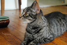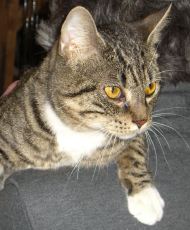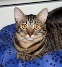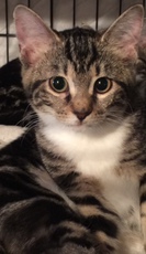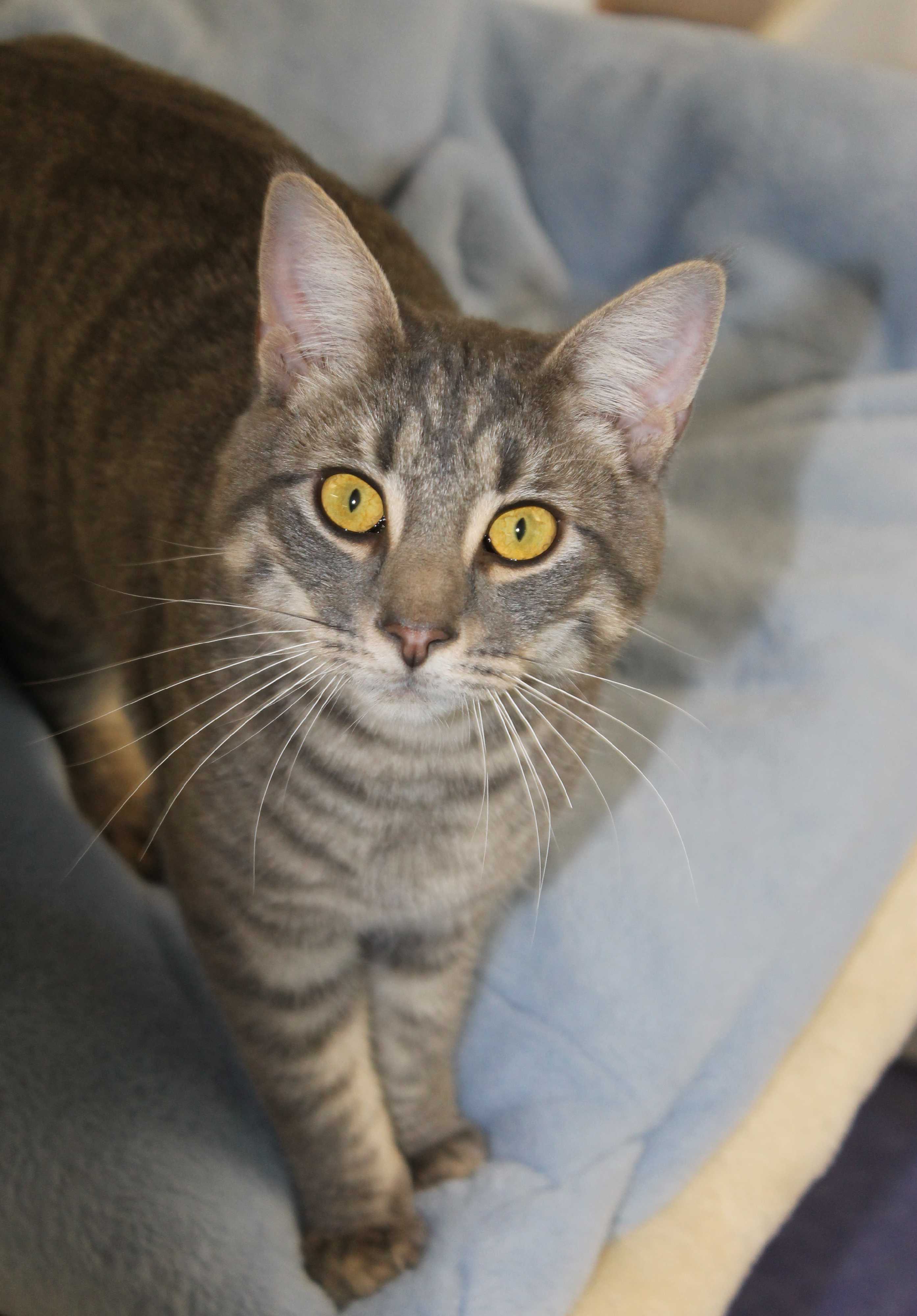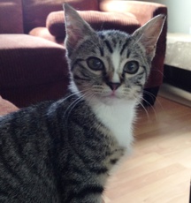 This lovely lady is a 10 month old classic brown Tabby. She was left behind to fend for herself when her owners moved. Natalia is very well mannered, sweet and gets along great with both cats and dogs