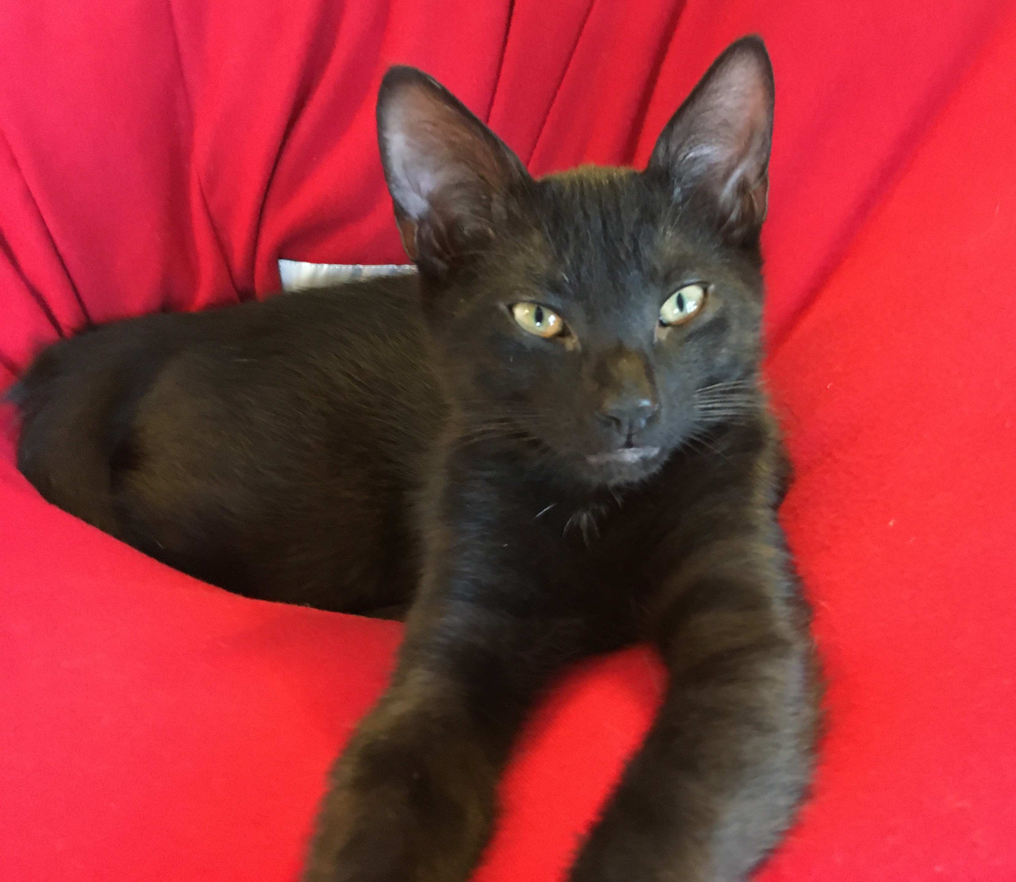 Sweet Norman is a lively playful young kitten (born April 2015). Norman knows his name and comes when you call him. He acts more like a dog than a cat. Norman has a voice as quiet as a mouse and a heart as big as a lion. He loves to cuddle after playtime and will sit on your chest while you watch TV. Norman will bring so much love and fun to the right family, could that be you?
