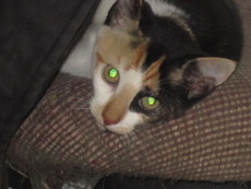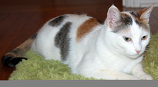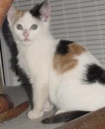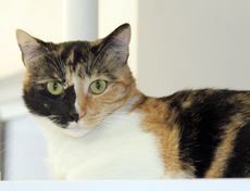 This lovely cat raised 5 kittens who have all been adopted and now Naomi is eager to find a loving home of her own. Naomi is a tall, gentle calico with beautiful markings. She's a bit shy until she feels safe and very affectionate once she knows you. Naomi is a year old, up to date on shots, spayed and micro chipped. Her bright green eyes always seem to be smiling and she gets along very well with other cats.