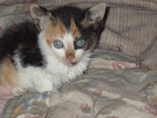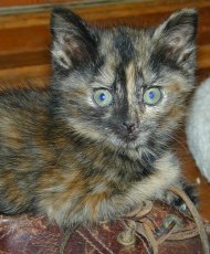 is a 9 weeks old female Calico. She's a little shy. Loves to be cuddled and purrs like a motor. Just adorable!