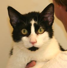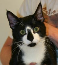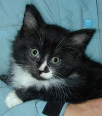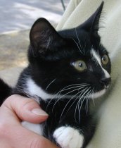 Little Nibbles is one of three darling kitties living in a foster home with his Mom, Mia. This handsome little boy with black and white coloring is very friendly and loves human companionship, as do his two sisters, also featured on our website. Born at the end of May, 2011, Nibbles is ready for his permanent home.