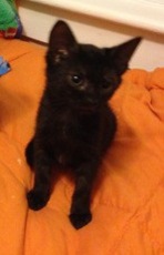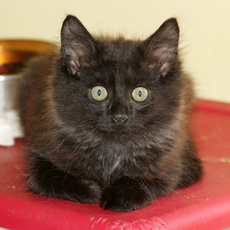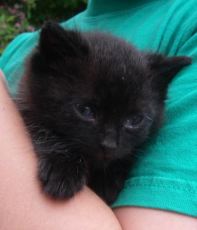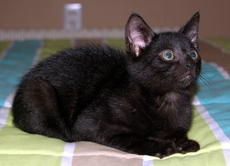 Nightwatch, a black female is currently 10 weeks old, (born approx. end of Sept.) and is simply an adorable kitten! Nightwatch is a bit shy and physically smaller than her brothers Wynke and Blynke. Little Nightwatch likes back rubs and loves to be petted and stroked.