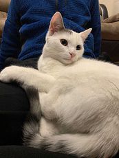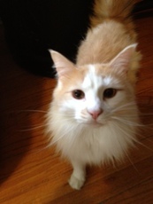 Nicole's cats are two super handsome boys, 3 year old William (white/orange markings and longish fur) and 9 year old Q-Tip (pure white) both of whom are in need of a new home. These soft, sweet cats were adopted as little kittens by their owner who can no longer care for them due to illness, but loves them dearly. Both are neutered and in excellent health. Q-tip is a very mellow kitty and 3 year old William is an active boy for his age. To meet these cats, please contact Nicole at NOquendo@simdev.com.