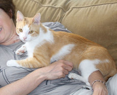 Cats don't come any sweeter than Nate. He just walked up to his rescuer on the street and gave a big meow! Now in a foster home, he has proven to be very affectionate and attentive, always staying close by and wanting to sit on the nearest lap. About a year old, he's curious about everything and acts like a big kitten. He loves to play and is used to living with both dogs and cats - but note he does like to play chase so any companion animal should be able to hold their own. He's going to make a family very happy.