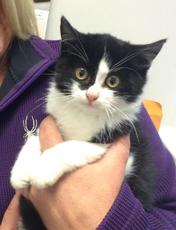 Nina is an adorable little 8 week old (as of Oct 23) kitten. This little beauty was found by some students at Somers High School when she was near death. She was brought to Pet Rescue where our amazing vet and one of our dedicated volunteers saved her. She is the calmest and cuddliest little kitten we have seen in a long time. While we can't promise that she will stay calm, we know that she is the sweetest little kitty and will make somebody very happy.