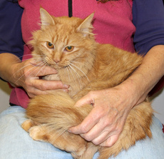 is a gorgeous orange-red male tabby. He loves getting attention, and his favorite pastime is following his mom around. He is a healthy 2 ½ years old tiger look-a-like.