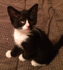 Nina is a very special little kitty. About 12 weeks old as of 7/25/15, she is blind in both eyes. BUT, that doesn't bother this spunky little girl. Nina loves to be loved and has adjusted well to other cats.