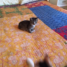 Nacho is an explorer, he wants to know about anything he can find, he plays with anything that moves, he explores anything that is open. He watches TV so he can paw at the screen. He paws the computer screen cursor. He writes messages on the computer keyboard (his language). Purrs from his heart. In sum, he is a delight. Nacho is 9 weeks old (as of 8/13/15)and his sibling Domino is also posted.