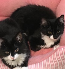 This beautifully matched pair of kittens are looking for their forever home. About 4.5 months old as of 2/1/16, Noelle(f) Nicholas(m) tend to be a bit on the shy side but warm up quickly. Charming, amusing, good-natured and crazy cute these bonded siblings must be adopted together.