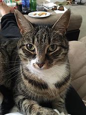 and ring around his neck. He's a cat for all people. He's not fazed by dogs