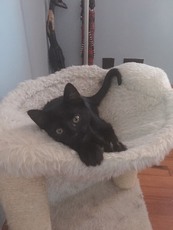 Due to her family's relocation, Natalie, a 10 year old female long hair, all black, spayed and completely domestic, great with children and healthy must find a new home. Natalie is not declawed, but is a gentle cat who has never, in her ten years, taken a swipe at anyone, animal or human. She is so patient that she even let her owner's daughter haul her around the house and pretend that she is her baby doll being rocked to sleep. Natalie tends to get shy around newcomers, and will usually tuck away into a hiding place when the family has guests over. To meet Natalie, please contact Kamilla at kamilla.bogdanov@gmail.com.