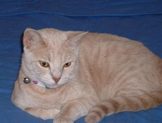 is a precious, gentle and loving 4 ½ year old female cat. She is the mother of three: two boys (Mac and Nutmeg) and one girl (Oreo). She purrs like a motor when given love and she is docile and quiet by nature. She was found as a stray cat almost 3 years ago very thin and emaciated, hence she looked like a blond noodle. Noodle has happily been an indoor companion ever since and has also filled out.