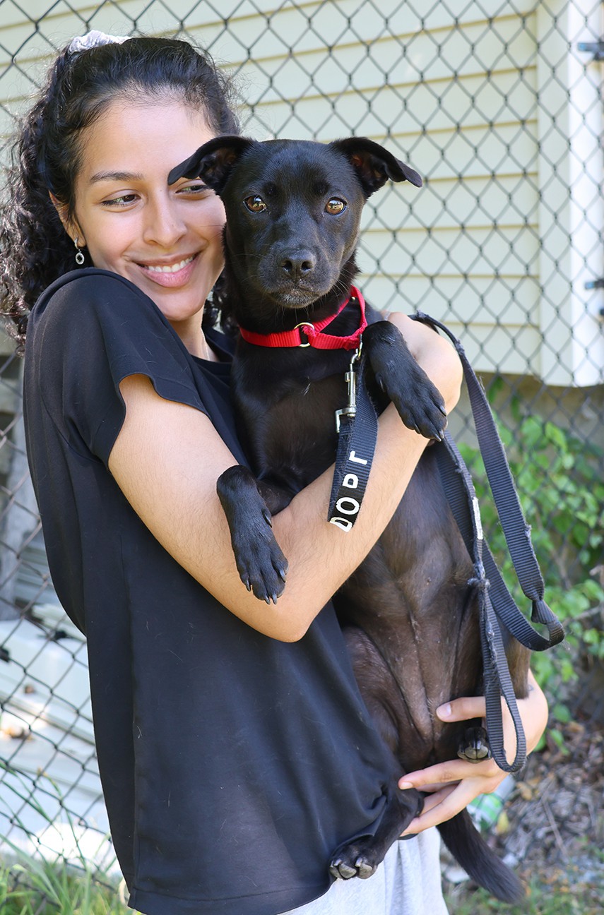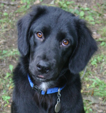 looks like is a Flat-Coated Retriever with a wavy black coat and big brown eyes that will melt your heart. Always cheerful and ready for some fun, this beauty is still very much a puppy at 8 months old. Naila is a loving and loyal companion who is ready to please and learn yet approaches life in a light-hearted way. She weighs about 32 lbs. Please fill out an adoption application.