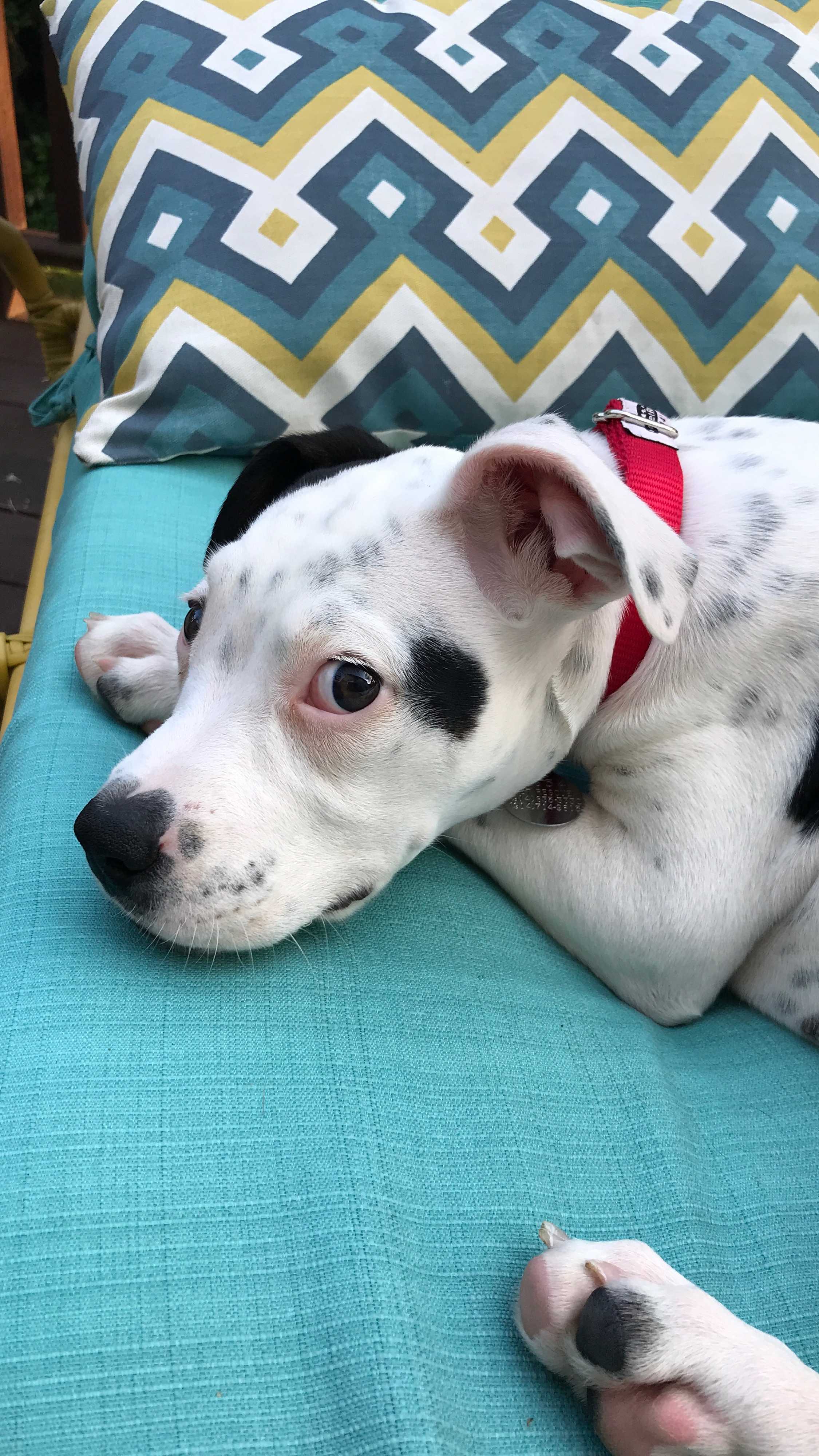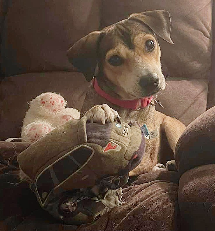 Nadia is an adorable Beagle/Boxer mix pup is about 10 weeks old and around 15 lbs. She is so sweet and loves attention, but she can be a little shy too. She wants the attention, but then holds back again. It's cute and heartbreaking to watch. She love her belly rubbed and of course chewing on her bones and playing with her toys are her favorite activities.