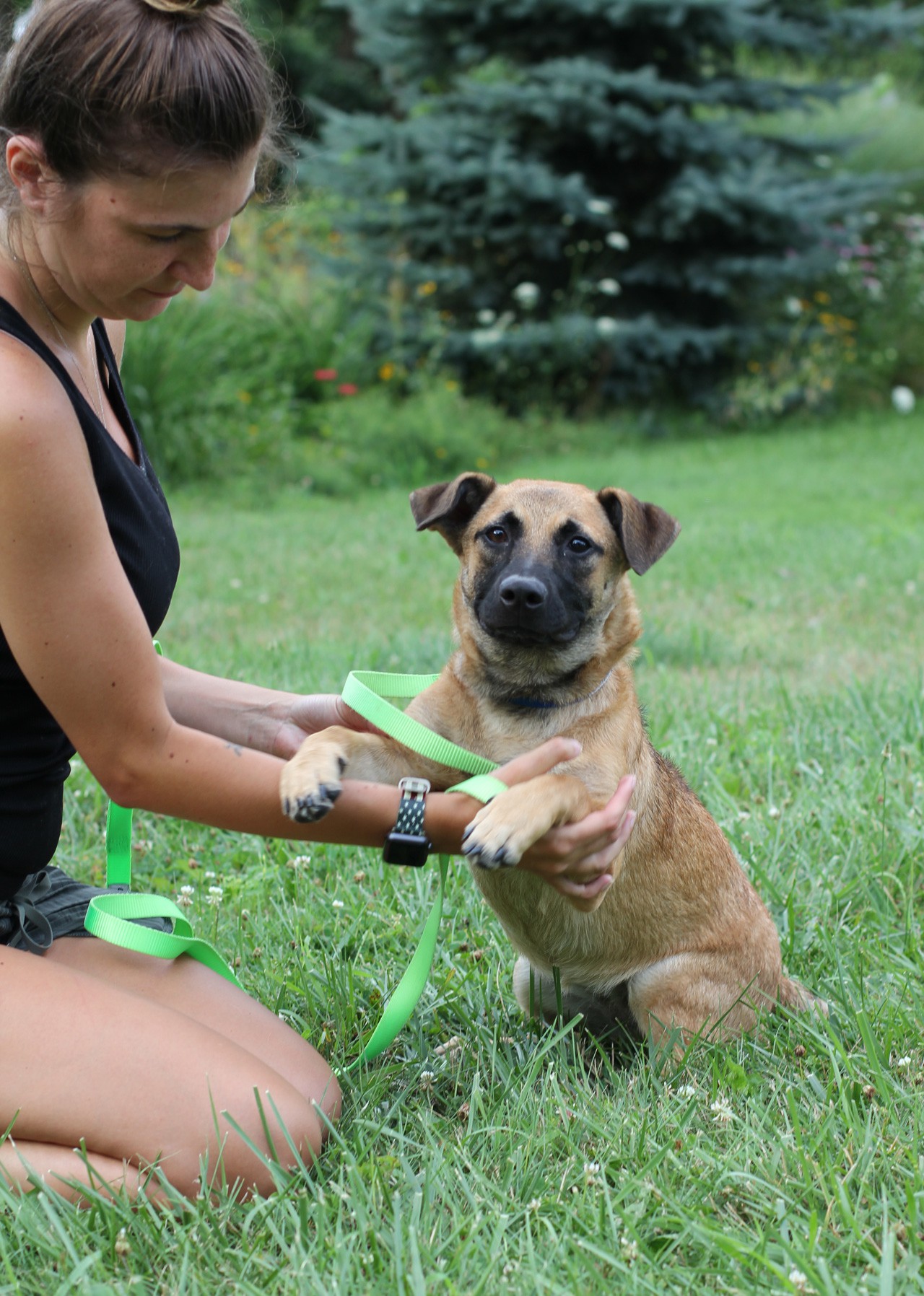been on a leash and is trying her best to understand