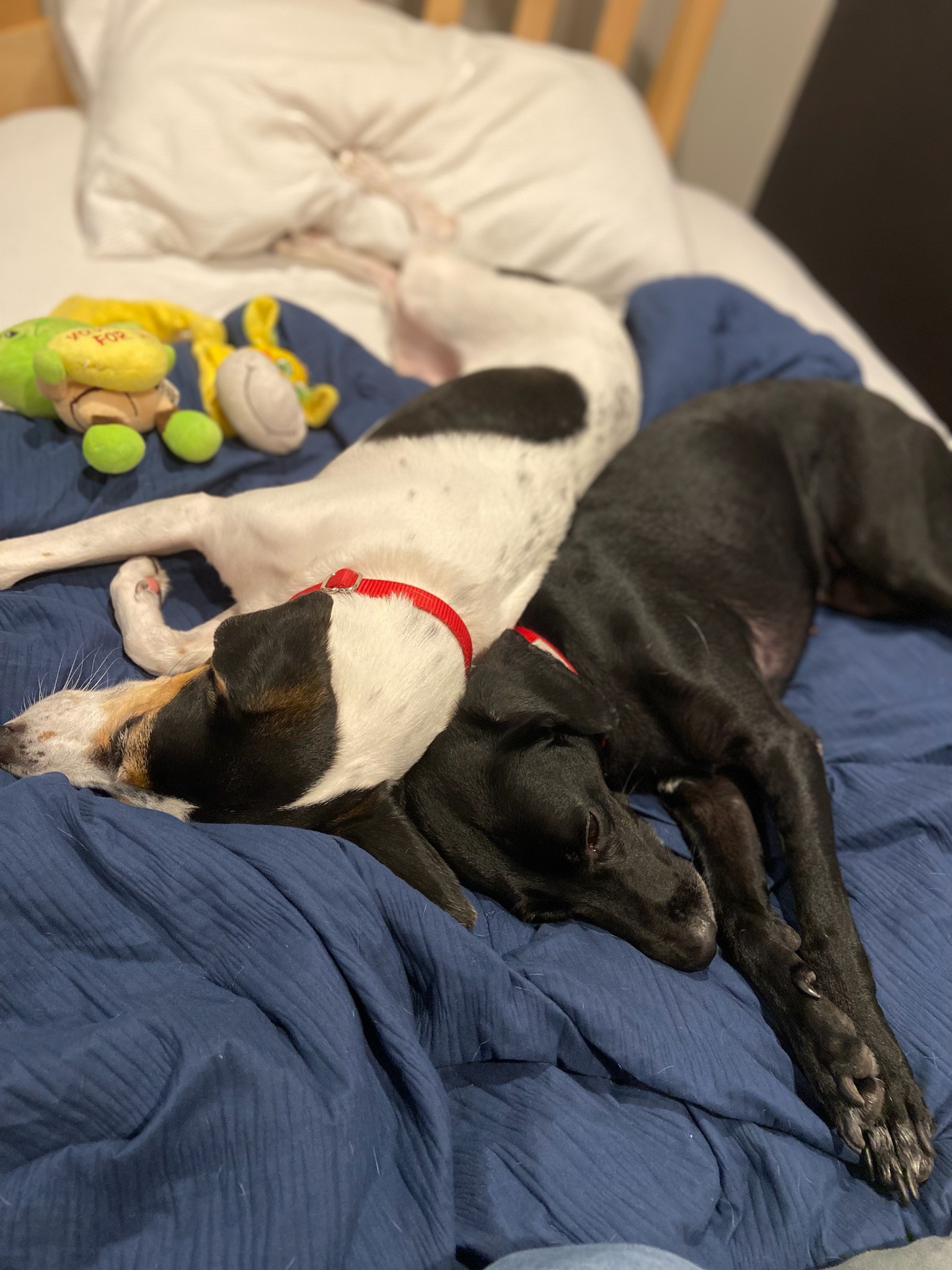 head rubs and play with her foster sister's toys and