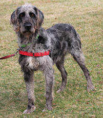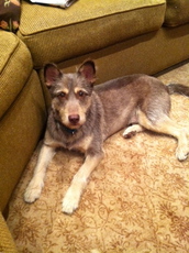 Norwood is a gorgeous Terrier/Giant Schnauzer/Hound (?) mix, about 3 years old and 58 lbs. He is a tad shy but very sweet and friendly. Norwood is settling in nicely to his foster home and enjoys spending time with his human foster brothers. Norwood is very scared of loud noises - so please, no city living or young children.