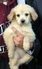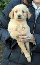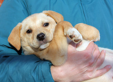 Nutmeg (or more fondly referred to as "Nutty" at his foster home, is a gorgeous yellow Lab mix. He is about as close to a lab as you could get, really...His blond fur is soft and flat and his manner is playful and sweet. He is about 10 weeks old and 12 pounds. He takes the lead among his three other litter mates when playing or discovering new adventures in the yard! He LOVES to be held and snuggled, loves playing with toys and with the golden retriever in his foster home. He has a healthy appetite and is mostly paper trained. Nutmeg seems very smart and very trainable. Nutmeg will be a very loving, gentle and loyal companion to both young and old. He is a very special guy!!