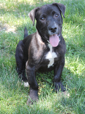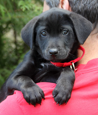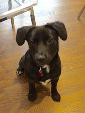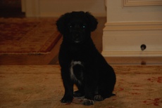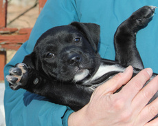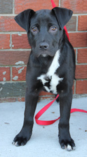 Napoleon is an incredibly endearing little pup. He is about 10 pounds at 10 weeks old. He is a lab mix, with a face that almost resembles a boxer. Napoleon has beautiful white markings on his face and chest, and a soft black flat coat. He very playful and sweet with his litter mates and loves being with the large golden retriever at his foster home. He will do well in any setting...with children or other dogs and will make a wonderful family pet. He gives alot of love and gets alot of love! Napoleon is mostly paper trained and has a healthy appetite, seems very smart and trainable.