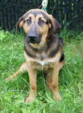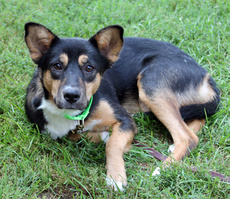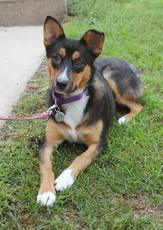Noodles is an adorable 5 month old male Shepherd Mix and is around 30 lbs. He could really use to gain a few pounds, but he is a happy boy that enjoys playing outside with other dogs and usually has a tennis ball in his mouth...he doesn't know how to fetch yet, but likes to carry it around. We are sure any family that adopts him will be able to teach him all sorts of tricks. He gets along with everyone - people and other dogs. He is easy to fall in love with and has a great personality.