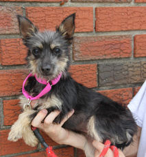 Nookie is and adorable 1 and half year old female Yorkie/poodle Mix. She arrived with two 5 month old puppies, Carmine and Clyde, who will also be available for adoption, shortly.