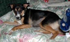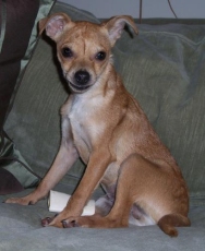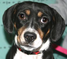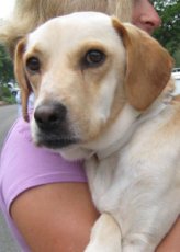 is a very sweet, snuggly Beagle/Chihuahua mix. She is about 1 1/2 years old and around 20 lbs. She is a little timid of new situations and needs a quiet home. A real sweetheart of a dog. Very affectionate and loves to give kisses. We don't know if she is house broken. Please send in your application.
