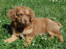 Noodle is such a character! She is one of the N puppies - a litter of 8 also posted She is very playful, goofy and sweet. She is about 8 pounds and 8 weeks old. She is cocker, setter and lab mix. She is super soft and fluffy and loves to be held and snuggled. She is very outgoing and loves to play with her litter mates and her foster buddy Rocky, a large Golden retriever. She would be a really great pet for any family. Noodle is paper trained.