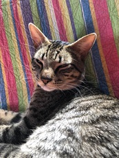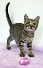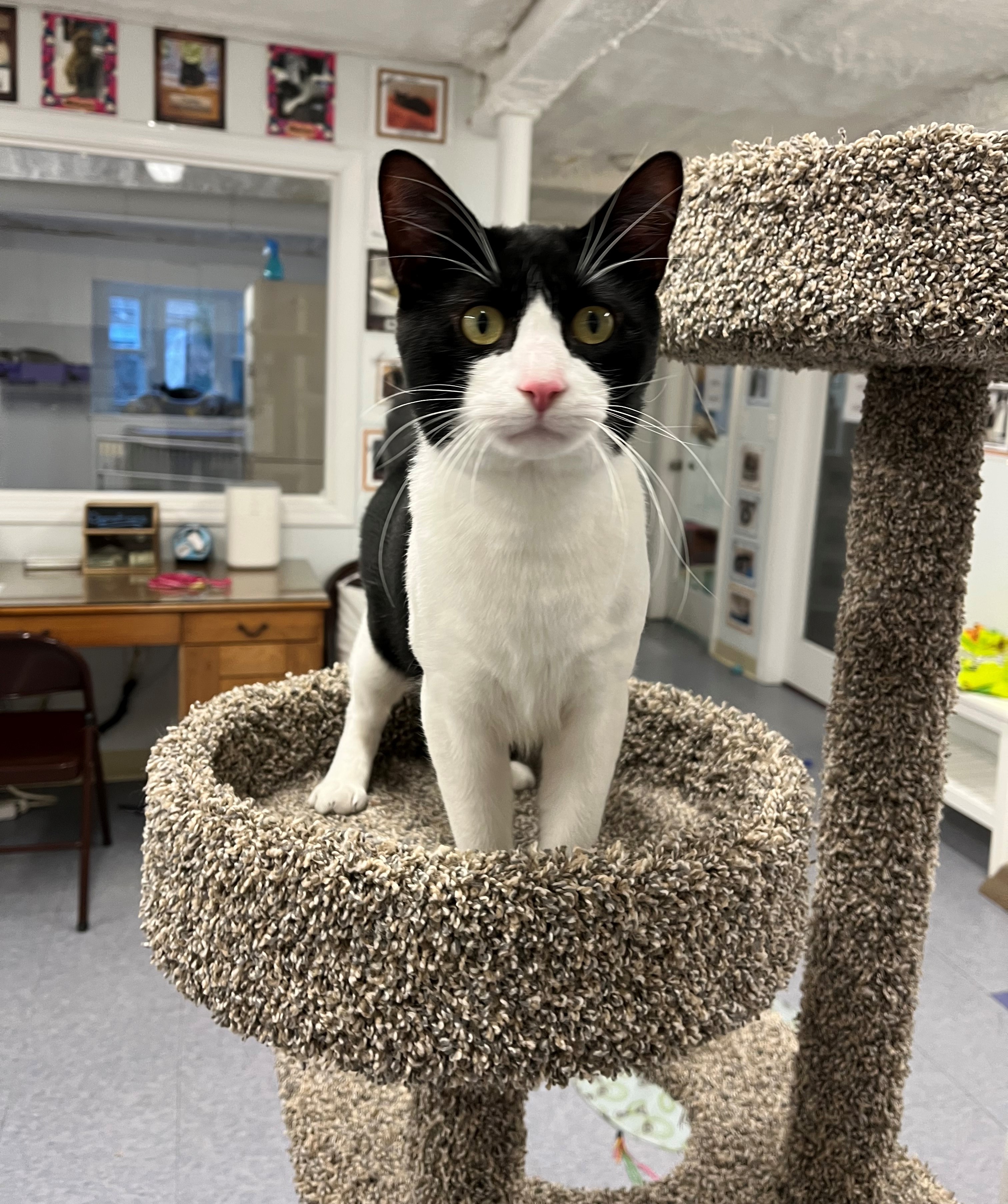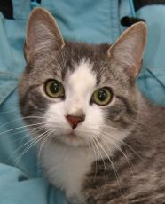 Born May 26, 2022 Meet Oliver, a very spunky kitten! Oliver is very playful; loves to use his scratching post and purrs the minute you walk into the room. He enjoys playing with toys and is very curious about everything around him. If you are looking for an adorable kitten, Oliver can be a cuddle bunny too. Oliver is good with teenagers and other cats. He hasn't yet been exposed to dogs. Oliver just might be the kitten for you.