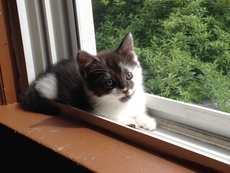 This sweet little boy is only about 6 weeks old and needs to be in a home with another kitten.