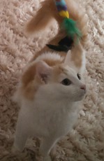 Ori is a handsome 4 year old orange/white long-hair cat with a warm, easy-going personality - very affectionate. He is friendly, very sociable with humans and gets along with other cats, very playful in general and especially loves playing with interactive toys. Ori was rescued from an apartment where his previous owners abandoned him. Ori can be visited in the Kitty Cottage. kc