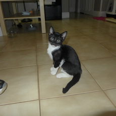 is a beautiful 2 year old Tuxedo cat. She is very loving and gets along well with other cats.
